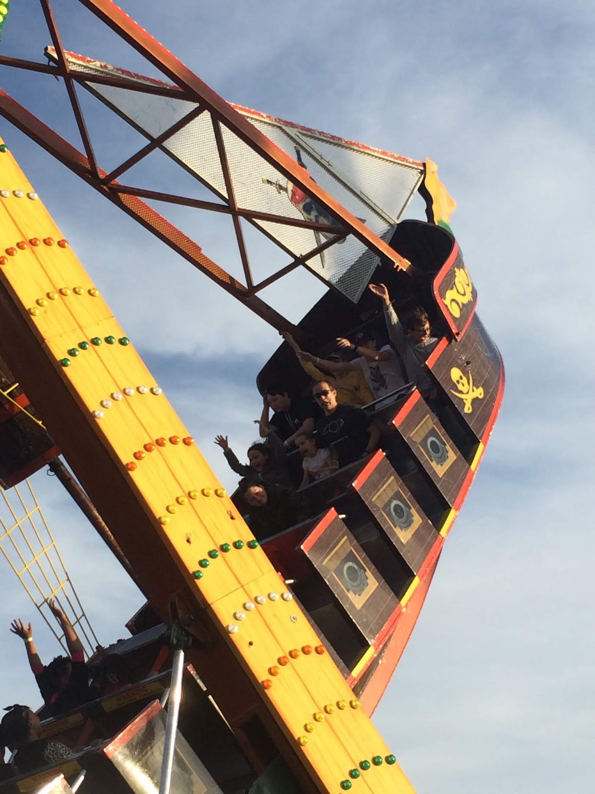 The girls were terrified of the Ferris Wheel, but this crazy thing that went round and round and up and down was their favorite!